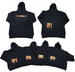・ブラックのパーカー、ロゴはオレンジで