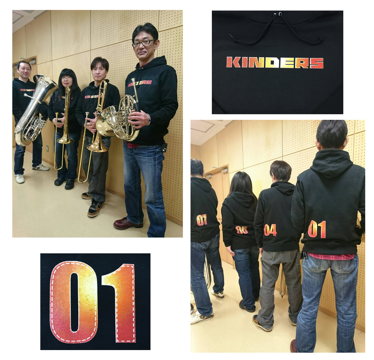 新潟県新潟市の管楽器アンサンブル「KINDERS」様、普段はクラシックを演奏されているアマチュア音楽サークルですが、今回はポップスやジャズ等のステージ用にオリジナルパーカーをご注文いただきました。