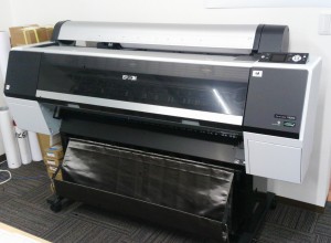 業務では大判ポスターや横断幕などをデザインし、このプリンターで出力していますが、旧機と比較すると流石に色味もよくスピードも速いので、この秋の各種イベントで大活躍しております。