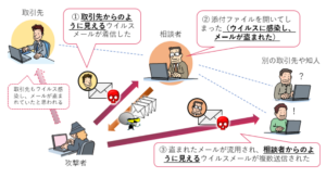 例えば、受信したパスワード付きzipファイルが、業務で使われる正規のメールを装う攻撃メールの「Emotet(エモテット)」に感染していても、受信側のセキュリティソフトでウイルスチェックができなければ、zipファイルを解凍した際に感染してしまいます。この場合、PPAPはマルウェアの隠れ蓑として利用されてしまうのです。