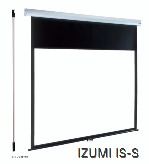 IZUMIのIS-S100Vは、WXGAフォーマットの100インチ天吊りスクリーンです。