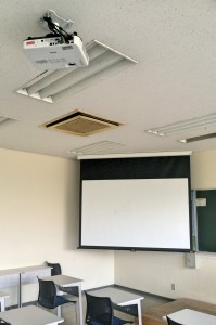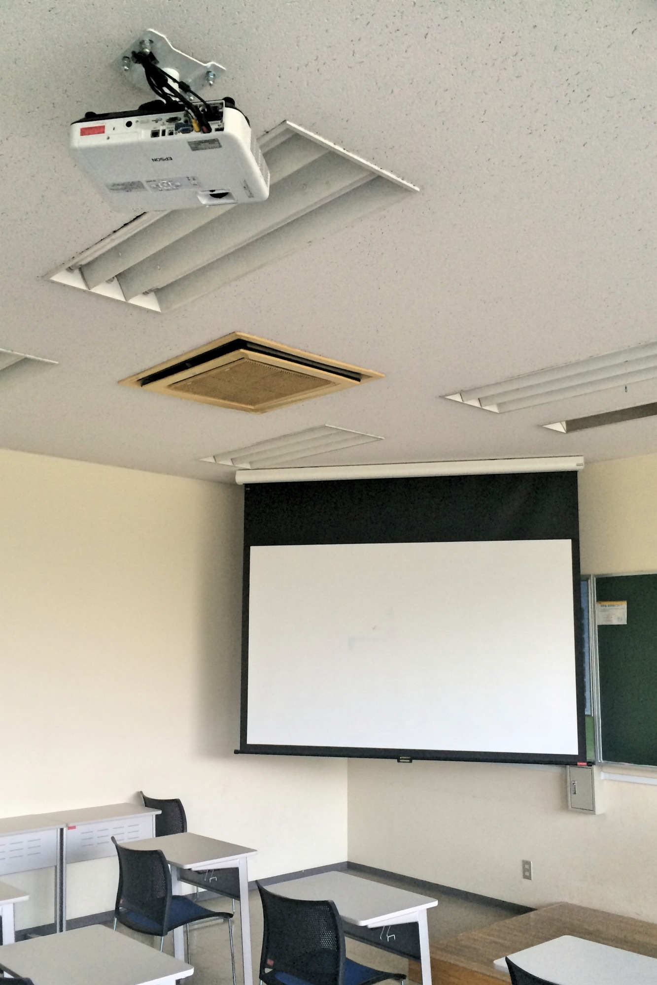 天吊りしたプロジェクターとスクリーン 天吊りしたプロジェクターとスクリーン