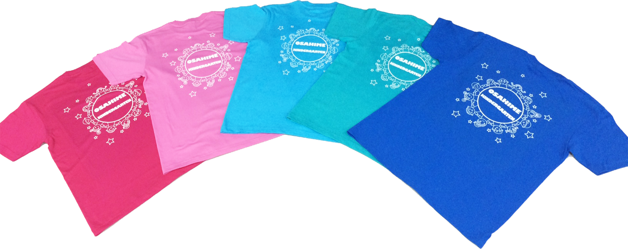 シンプルに1色使いのプリントですが、Tシャツのベースカラーが豊富なのでとってもカラフルなイメージとなりました。