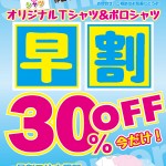 6月3日(金)までの期間限定で、オリジナルデザインTシャツ・ポロシャツをご注文いただきますと、通常価格から30%OFFの大幅割引。