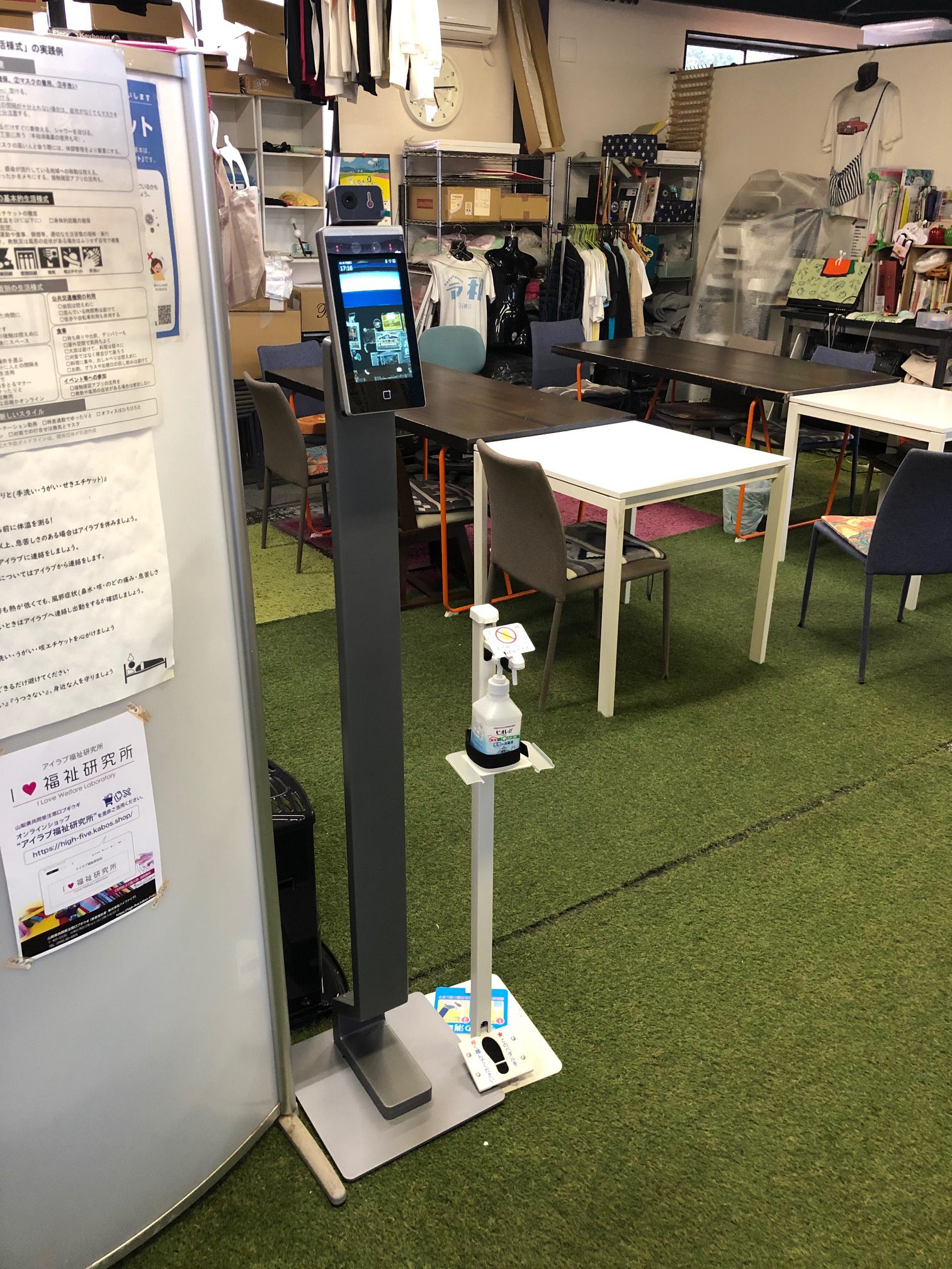 新型コロナウイルス感染症対策として、就労支援ご利用のメンバー様の体調変化をいち早く把握するために、サーマルAIカメラを事務所内の動線上に設置されるということで、お手伝いさせていただきました。