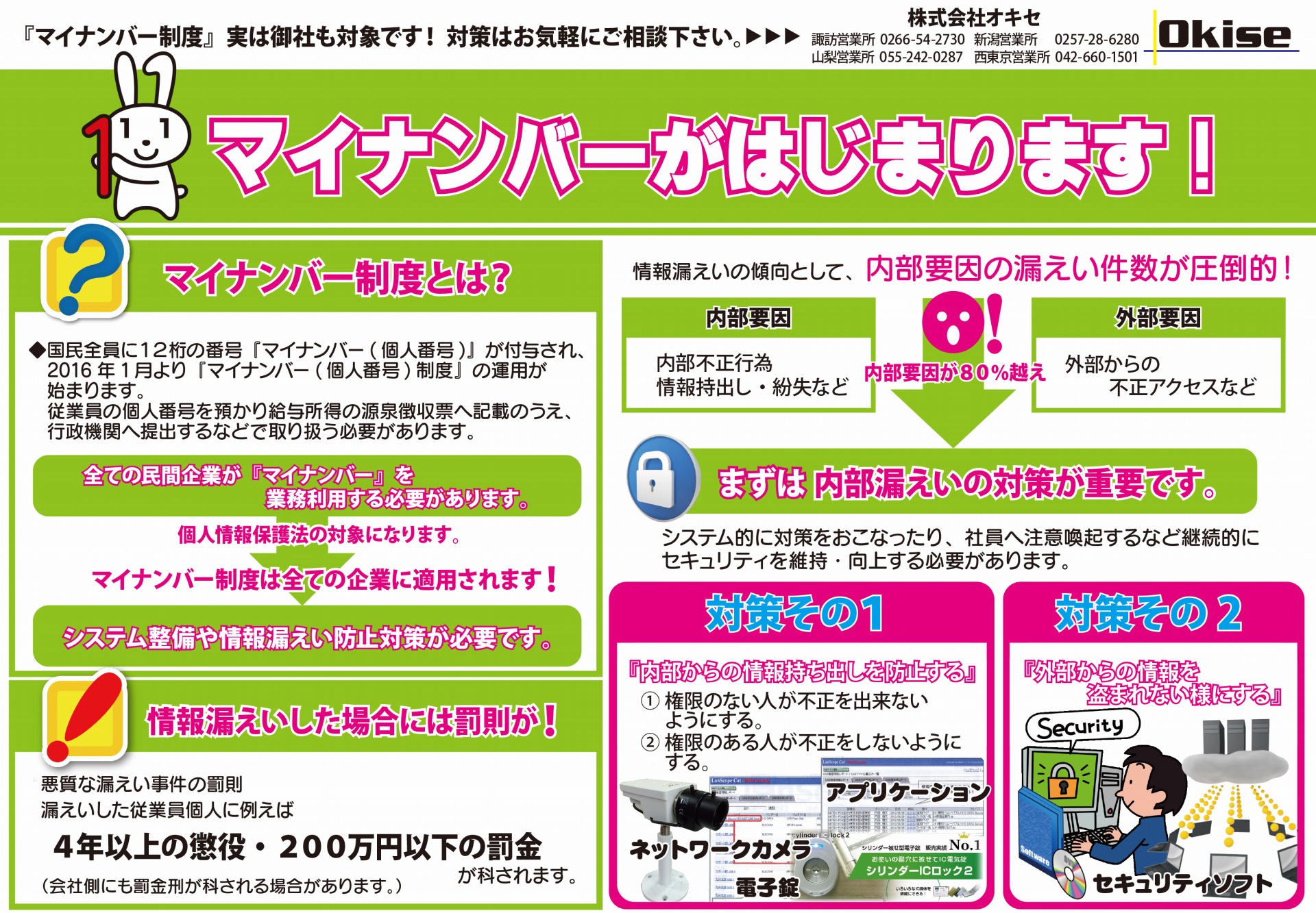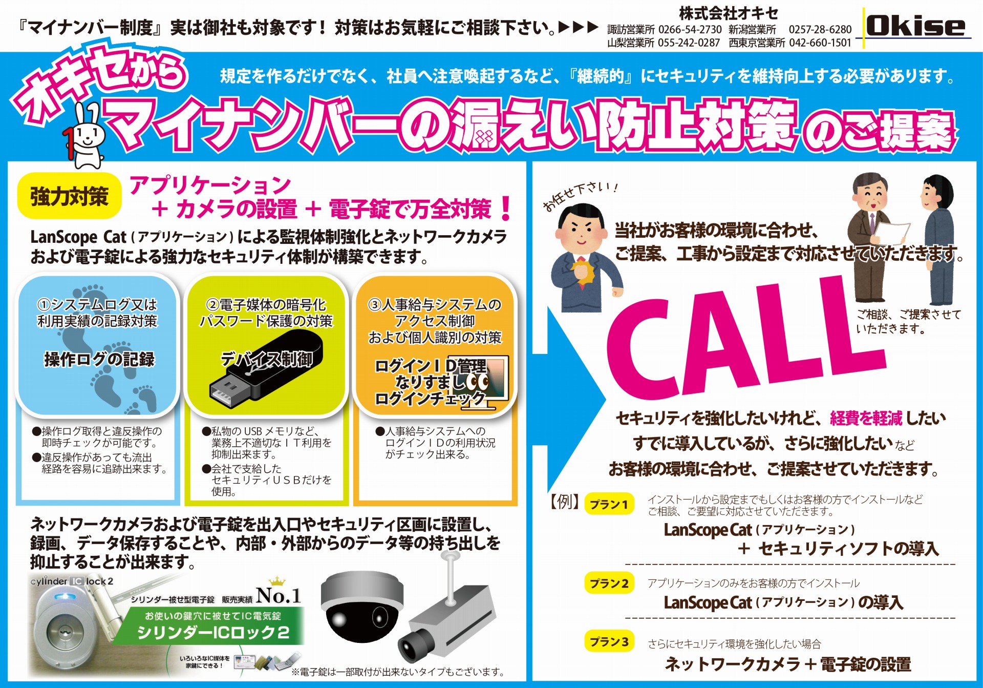 運用開始まであと半年に迫ってきたマイナンバー制度。マイナンバーの漏えい防止対策はもうお決まりでしょうか。特にポイントとなるのが「内部漏えい」への対策です。オキセではお客様の環境に合わせてご提案させていただきます。どうぞお気軽にお問い合わせください。