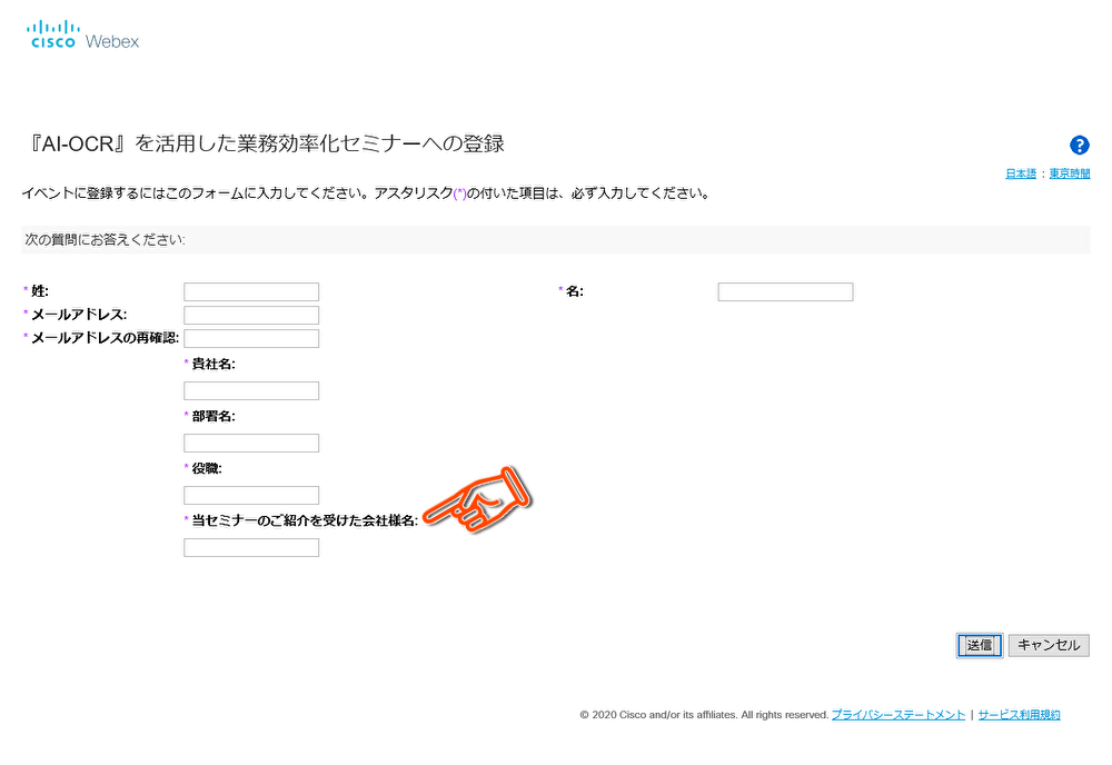 別のウィンドウで CISCO Webex の申し込みページが開きます。