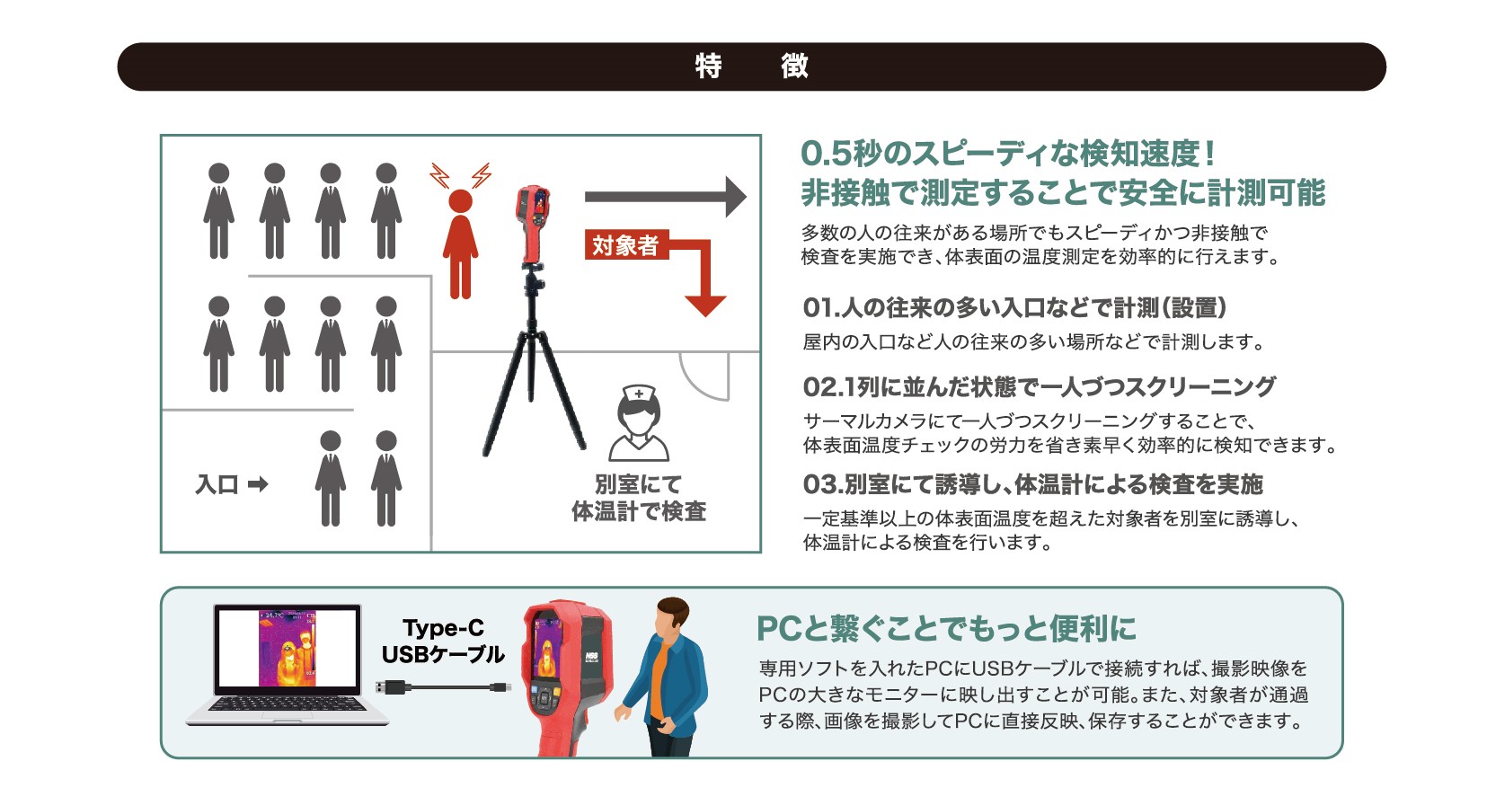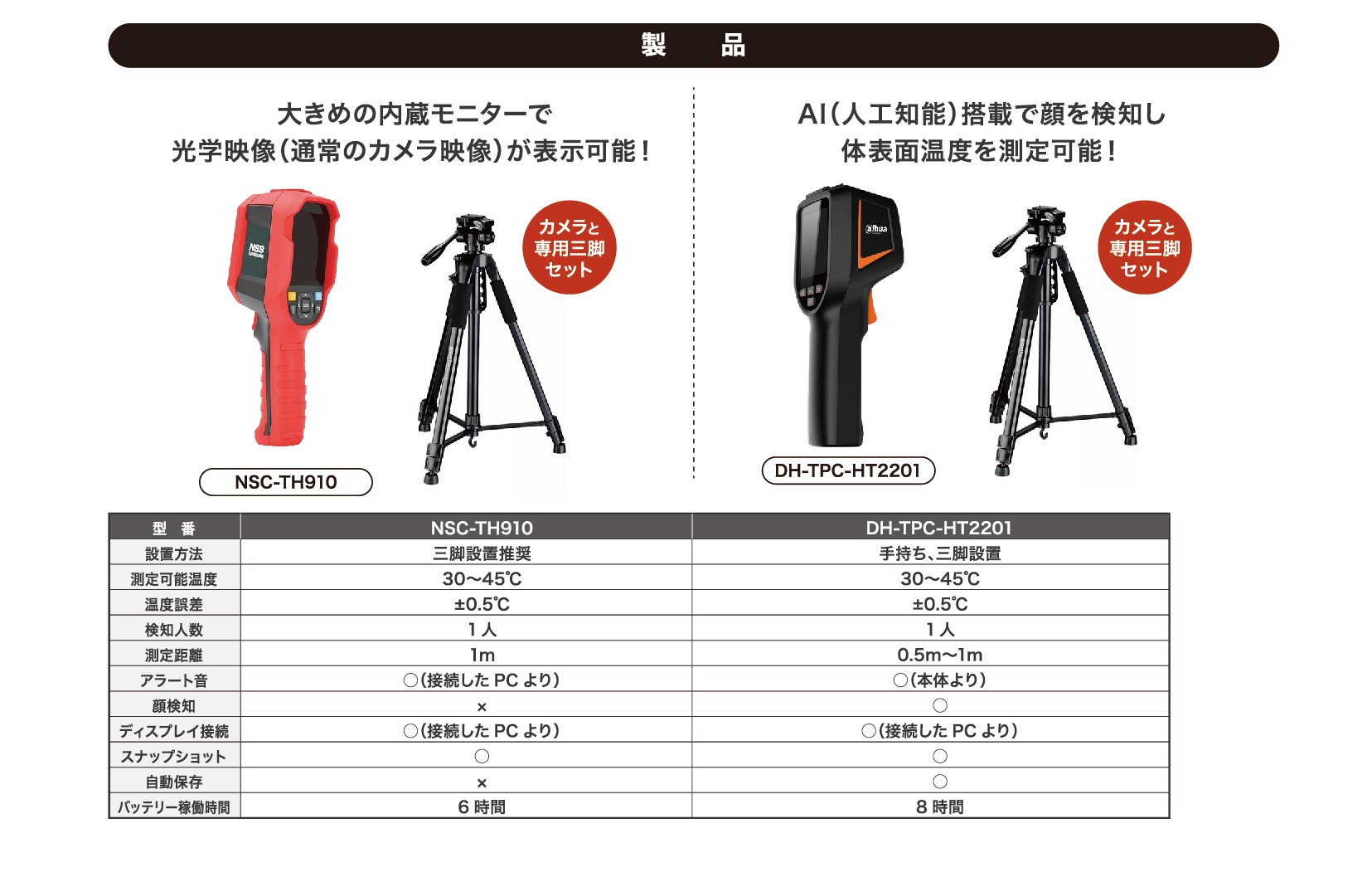 ほかには、最大20人測定可能タイプやアクセスコントロール&サーマルAIタイプもございます