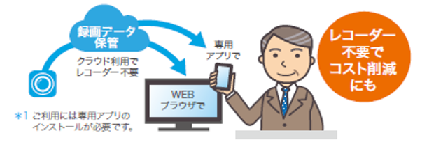 レコーダーなどの機器も不要で、ハードディスク破損による録画データの消失などのリスクを軽減します。