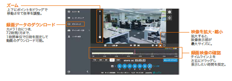 | セキュリティ | 閲覧ID毎のログインログ*を最大3ヵ月分保持 閲覧元グローバルIPアドレスにより視聴制限も設定可能 *取得可能なログはアクセス時間、アクセス元IPアドレス、端末OS/バージョン、ユーザ名です |