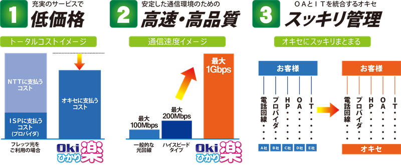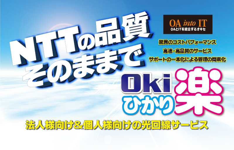 Oki楽ひかりは最大1Gbpsの通信速度で高品質かつ低価格のサービスです。